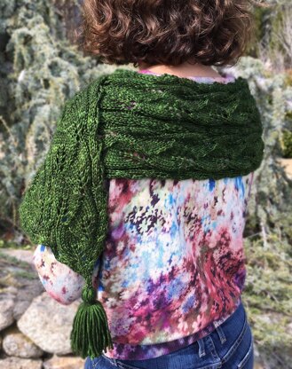 The leafy columns and lacy cables of Lisdoonvarna are worked from stem to leaf tips, in one direction, with the tapered ends shaped by increases and decreases. Lisdoonvarna is shown as a scarf, but can also be worked as a shawlette or shawl of any width, by repeating the increase and decrease sections as many times as desired. Named for "The Road to Lisdoonvarna," a traditional Irish tune.