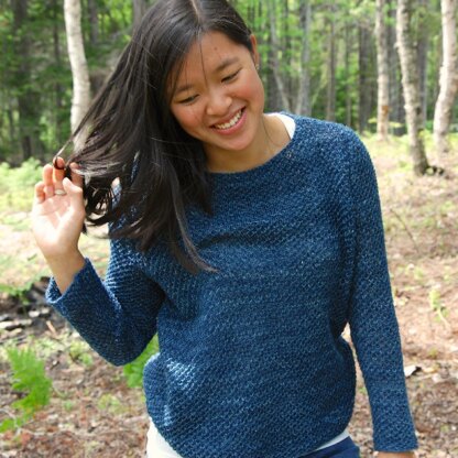 The essential year-round pullover, lite is a light and breezy basic pullover with ¾ length sleeves and a scoop neck. The waffle texture adds just the right amount of interest, highlighting the unique color and texture of a special lace weight yarn, while the looser knit from the larger than usual needle sides provides loft and lightness with plenty of stretch. A classic design, lite is knit in pieces from the bottom up, shoulders are seamed and sleeves are set-in. The neck edge requires no finishing.