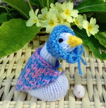 Duck is quickly knitted in one easy piece, with just the bonnet edge and shawl added separately.