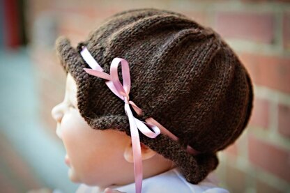 This hat combines sweet girly ruffle and a beret style for a poofy bonnet outcome. An eyelet round keeps the ribbon in place, and allows the cap a perfect fit!