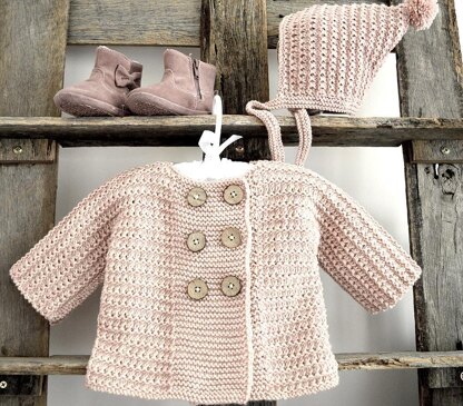 This stylish double breasted jacket has garter stitch bands and a simple all over pattern, making it the perfect warm and cozy cover-up for brisk spring or autumn days. Great pop over jacket and the style would be suitable for either girl or boy, depending on your colour choice. Pattern comes with schematic, plus photos and diagrams relating to construction of garment.