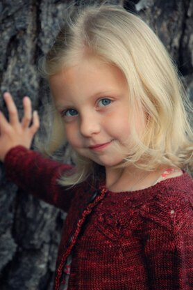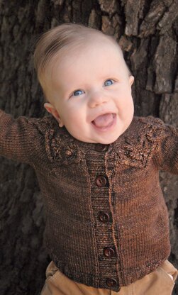This tiny version of the original Gnarled Oak Cardigan from my book Coastal Knits features a beautiful embossed cabled oak leaf motif. Little Oak is knit in one piece from the bottom up. The sleeves are knit separately and joined at the yoke. Your little one will look adorable in this eye-catching cardigan!
