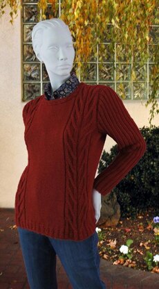 nspired by classic ribbed and cabled pullovers, this piece has been updated with some waist shaping and skinny ribbed sleeves. A little shoulder shaping adds a perfect touch to the fit. Work the body in the round from the bottom up to the armholes, with placed cable panels on each side of the front and back. The body begins with k2, p2 rib, with the cable panels growing organically out of the ribbing. After dividing work to shape the armholes, work the front and back separately. Short-rows are used to shape the shoulders for a better fit. The sleeves are worked in the round from the cuff to the armholes, in k2, p2 ribbing. After the initial underarm bind-off, the cap is worked back and forth.