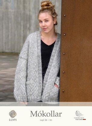 Lopi’s Mókollar is an oversized, open-front cardigan with drop shoulders. The garment’s back is worked from the hem to the neckline, then divided into the front pieces and knit to the lower edge. You’ll love wrapping yourself up in this cozy cardigan that is knit in Lopi Álafosslopi.