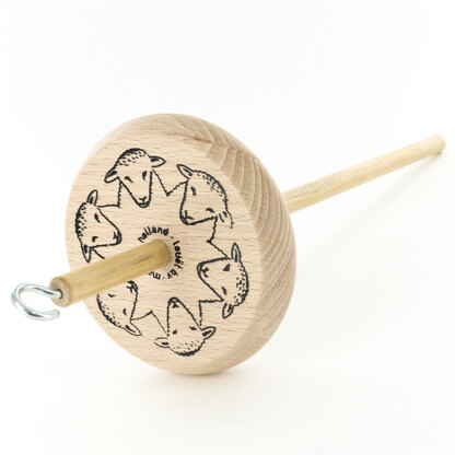 Louet Beginner Top Whorl Drop Spindles are adorned with sheep heads on the whorl and can be taken anywhere. This high whorl drop spindle is unlacquered and weighs 2.8 oz (79g), making it great for new spinners and for spinning thicker yarns.