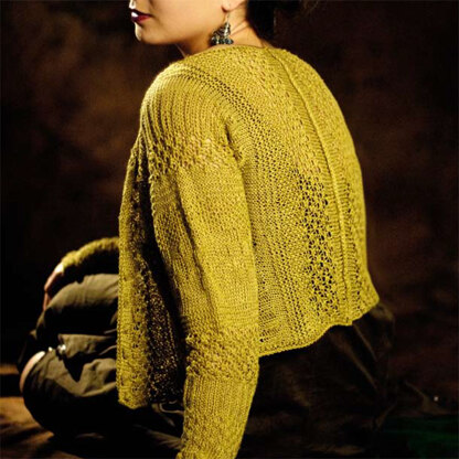 Euroflax Sport, this women’s cardigan, is worked in multiple stitch patterns, which not only look great but are fun to knit. The center back is joined with a