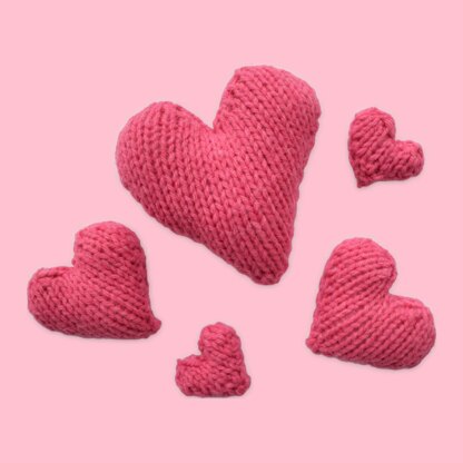 Knit these Love Hearts as decorations, keyring charms, jewellery, or even knitted confetti. This pattern includes three sizes of heart: small, medium and large. These little love hearts make are quick to knit, and only use small amounts of yarn so are super projects for using up any yarn leftovers to avoid waste. Each heart is made from one piece which is seamed up the back. Designed by Amanda Berry @fluffandfuzz, the hearts are knitted in acrylic DK yarns on single pointed needles (not in the round). For confident beginners and above, other techniques used include casting on and off, knits, purls, increases and decreases, and seaming to finish.
