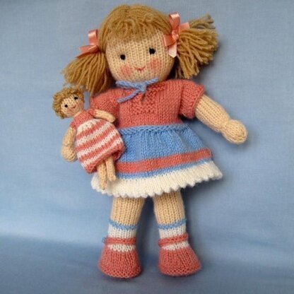 KNITTING PATTERN contains instructions for Lulu and her tiny doll. Lulu’s dress and panties are removable but her shoes are not.