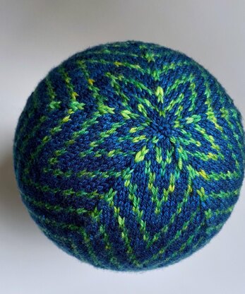 Lumena uses a simple stranded colorwork pattern and centered double decreases to create an eye-catching, star-shaped crown.