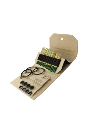Lykke Grove Bamboo 5" Interchangeable Circular Needle Set is a knitters dream to see and feel. Made of lightweight bamboo, these smooth needle tips are a snap to connect, a joy to knit with, and easy to store projects on. Each needle tip measures approximately 4½" on its own, with a measurement of about 5¼" from tip of needle to end of metal connector once tips and cord are joined.