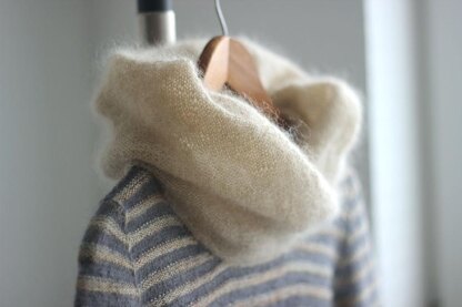 Ma non troppo is an elegant tailored pullover that plays with textures and airy lightness. Stripes of 1-ply merino-silk alternate with wispy mohair lace that also fashions the optional billowing collar.