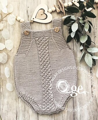 This sweet little romper would be suitable for the Spring / Summer baby. Romper is worked in two pieces from the bottom up, with a buttoned opening at the crotch. Romper Back and Front are worked in stocking stitch with garter stitch leg band, armholes and chest. Romper front has a pattern running down the centre worked in my version of the daisy stitch. Romper would also be great for winter/autumn if worn with leggings under.