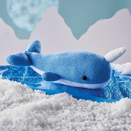 Discover a delight from the depths of the deep blue sea with this adorable big cuddly Narwhal whale. Designed by Amanda Berry @fluffandfuzz, the narwhal is knitted in acrylic DK yarns on single pointed needles (not in the round) using simple increases, decreases and short rows for shaping. The belly and body are knitted separately and seamed, so there is no tricky colour-work to master here. For confident beginners and above, other techniques used include casting on and off, knits, purls, increases and decreases, and seaming to finish.