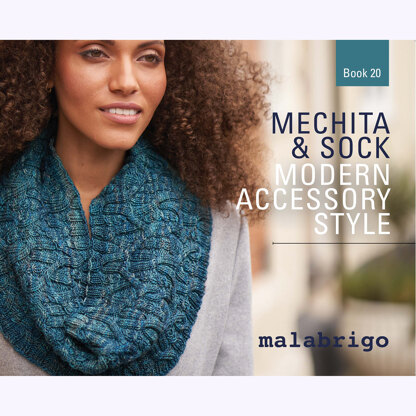 Malabrigo Book 20 - Mechita and Sock: Modern Accessory Style is a stunning collection of 16 designs bursting with color and beauty. With a mix of skill levels and project types, there is something for everyone in this book. Both Mechita and Sock are fingering weight superwash Merino wool yarns awash with the gorgeous hand-dyed colorways Malabrigo is know for, and they are interchangeable to accommodate any preference for a plied or singles yarn. Texture, stripes, cables, chevrons, and lace all have a spot in Book 20's mix of stylish cowls, shawls, and hats.