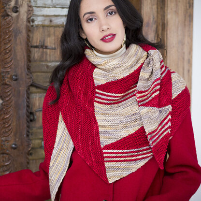 Bold stripes and triangles of color characterize the High Line shawl from Malabrigo. This asymmetrical wrap is knit in Rios, a worsted weight, hand-dyed yarn that is famous for its deep, saturated colors. Knit in two sections, this design uses short rows to create interlocking wedges of color.