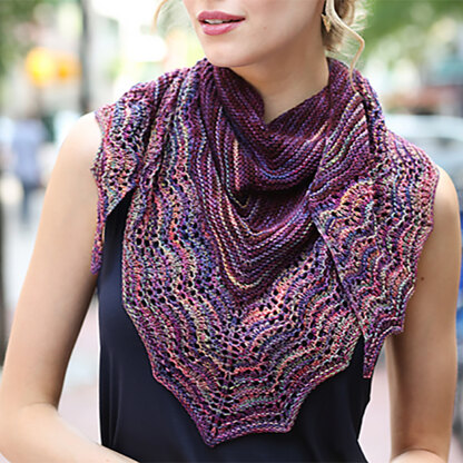 Malabrigo Minetta takes the classic garter stitch shawl with a lace edging and adds stripes with two hand-dyed colors to make a knit that is truly unique. This shawl is knit from the center of the top edge down, with the number of stitches increasing every other row. Make Minetta in two similar colors for a subtle striping effect or in two contrasting colors to really stand out!