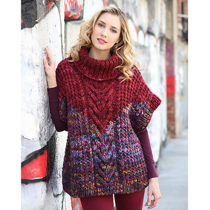 Super soft and super bulky Malabrigo Rasta knits quickly into Vandam, a thick and oversized pullover. This garment is knit flat from the bottom up and seamed with a cable panel and striped v along the center of the front and back. The turtleneck, wide short sleeves, and generous amount of positive ease make Vandam a wonderfully cozy layering piece for the winter.