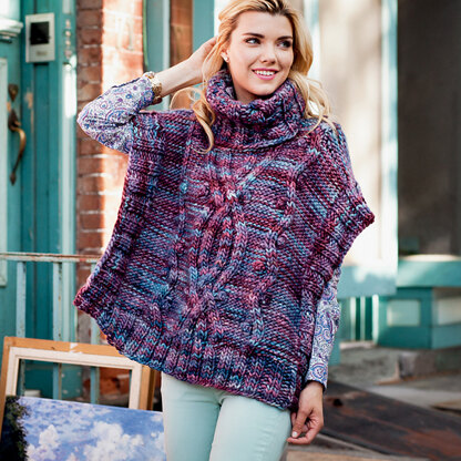 Cables and a big turtleneck make Malabrigo’s Williamsburg incredibly cozy. This stylish poncho is knit in Rasta, a super soft, super bulky yarn that will knit up in a flash.