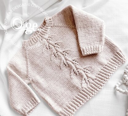 This comfy sweater which is sure to become a favourite because of its simplicity and comfort, is both practical and classic and would be suitable for everyday wear. The sweater is worked top down, no seaming. Worked in stocking stitch with a special yet eye catching leaf lace pattern running down the front.