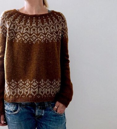 Manou is worked seamlessly from the top down. First some short rows are worked back and forth to create a higher back neck and then the yoke is worked top down to sleeve separation. Some last short rows are worked to finish the yoke shaping right before sleeve stitches are placed on hold, then the body is worked in rounds down to the hem. Sleeves are worked top down to the cuffs last.