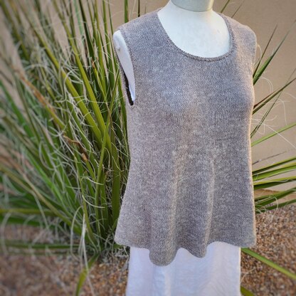 Simple and elegant, this flattering summer top is one you’ll reach for again and again. Knit bottom up and in pieces (or in the round), this easy tank has lovely fullness at the hem.