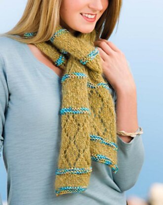 Materials * S. Charles Collezione Margot (chunky weight; 77% mohair/19% nylon/2% rayon/2% metallic, 163 yds/50g per ball): 2 balls gold #03 (MC) * S. Charles Collezione Diana Color (chunky weight; 72% nylon/28% polyester metallic; 63 yds/50g per hank): 1 hank turquoise/amber #22 (CC) * Size 9 (5.5mm) straight needles or size needed to obtain gauge * Size 10 (6mm) straight needles