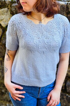 Let me introduce you to my new knitting pattern: the Maris Tee! Dive into a delightful project that embodies the essence of summer with its airy design and eye-catching lace pattern. Crafted seamlessly from the top down, this beginner-friendly tee features a stunning circular yoke adorned with intricate lace and twisted stitches, while the body is elegantly simple in stockinette stitch. Perfect for those warm days ahead, this tee promises both style and comfort, making it an ideal addition to your summer wardrobe.