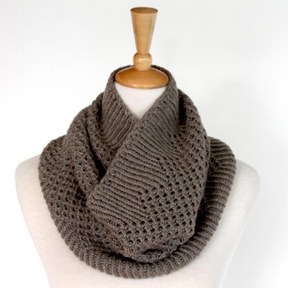 Take 2 skeins of squishy yarn and create Mendia, a cosy cowl designed for snuggling into. Wear Mendia as it is or fold in half for a different look – so versatile. Mendia features an eyelet edging with twisted ribbing merging into a fun twisted eyelet chevron pattern. This project knits up quickly and is a fun addition to any wardrobe or a perfect gift.
