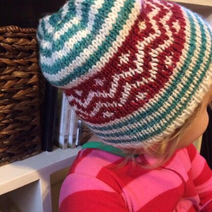 This pattern is a great way to use up leftovers and have fun experimenting with color. Pattern has adult, child, and toddler (age 2-4) sizes.