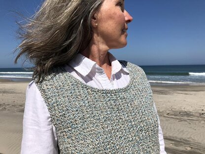 Classic is the best way to describe what may just become a wardrobe staple. Wear it separately or layer it over a shirt. Make it in several colors so you have one for every occasion! The body is worked in the round from the bottom up in easy to work Sand Rib. The front and back are divided at the armholes to work each separately. Waist shaping is used to give the body a more feminine fit, and a scooped neck makes this a versatile top. Simple narrow bands of garter edge the armholes and neck.