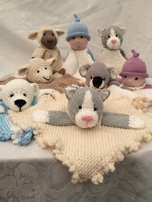 This pattern contains 5 characters for you to create for a special baby. There are four blanket options, frilly edge round and square or corded edge round and square. Finished blanket measurements are approximately 14 Inches/34cms Square or diameter. This may vary depending on yarn choice of course.