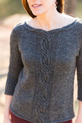 The name Milana has many origins with different meanings. I picked this name because I thought several were fitting for the design. The Sanskirt origin means joining together like the single cables from the neckline join together to form the double cable on the front. The Spanish origin means miracle of the blessed virgin and light. I had quite the time writing the instructions for the neckline of this design, but miraculously I accomplished it. Although it does not have a Italian origin, Milan is both a city and a province in Italy; Milana brings to mind grace and sophistication reminiscent of its inspiration which is expressed in this design. The beautiful cables in this design are built upon an eight stitch left crossed cable arranged in certain ways. The whole pattern is like a meditation on a single cable… how one simple twist can create many different design elements.