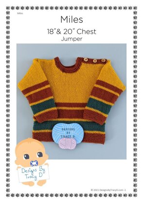 Miles is a Unisex Baby Knitting Pattern for a jumper in 2 sizes to fit a baby 18" & 20" chest made using DK yarn and 4mm needles. Use up your oddments of yarn to create a unique jumper. You will need approx 150g of DK yarn.