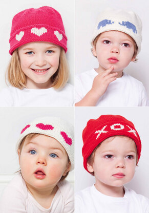 Share the love with the Smilla Hat. Hearts and Xs and Os decorate the hats knit in MillaMia Naturally Soft Merino.
