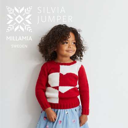 The Silvia Jumper from MillaMia is an incredibly sweet pullover with an intarsia heart motif taking center stage. The heart is divided into uneven quadrants that flip the colors of adjacent sections, creating a bold and interesting look. Choose the colors shown or choose a special child's favorites form the beautiful palette of MillaMia Naturally Soft Merino! This smooth and soft wool yarn is machine-washable and has a crisp stitch definition perfect for texture and colorwork patterns. The Silvia Jumper is knit flat in pieces from the bottom up and seamed. Intarsia pattern is charted only.