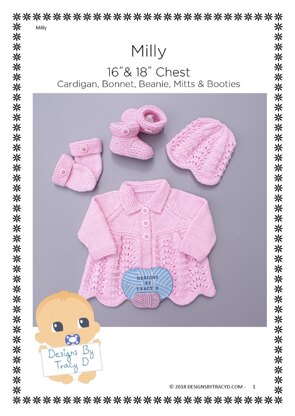 Milly Baby Cardigan, Hat, Mitts & Booties knitting pattern