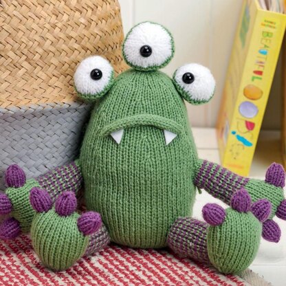 Spookily cute, this fanged chap is more friend than fiend! Try playing with the mouth position to make a happy or angry monster to give your toy real personality. Designed by Amanda Berry @fluffandfuzz, Mr Monster is knitted in acrylic DK yarns in the round to minimise seaming, although there is a little sewing together to do at the end. For confident beginners and above, other techniques used include casting on and off, knits, purls, knitting stripes, increases and decreases.