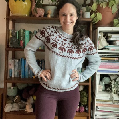 Mushroom Medley is a sweet sweater designed for the forager and mushroom lover! The yoke featured a medley of different mushrooms that are fun to knit and adorable to wear! Knit up in Brooklyn Tweed’s new Imbue Sport yarn available in a variety of lightly heathered shades. Show off your love of fungi with the Mushroom Medley sweater!