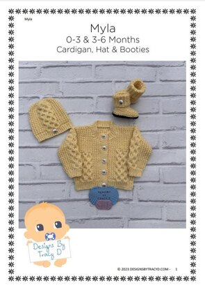 Myla baby cardigan 0-3 & 3-6mths knitting patter