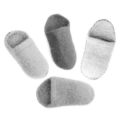 This backless slipper is constructed the same way as the Felted Slipper by Nancy Lindberg. Double pointed needles and bulky yarn make a thick and warm scuff. Add leather soles to the bottom to increase the life of the slipper. A washing machine makes the felting easy and fast.