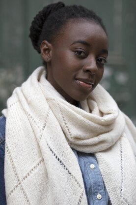 The same pattern design and yarn as the Poncho, but this wrap variation is versatile and cosy, doubling up as a daytime oversized scarf or a more delicate wrap for more formal occasions. Knitted in Rowan Alpaca Classic, it has a timeless, sophisticated appeal.