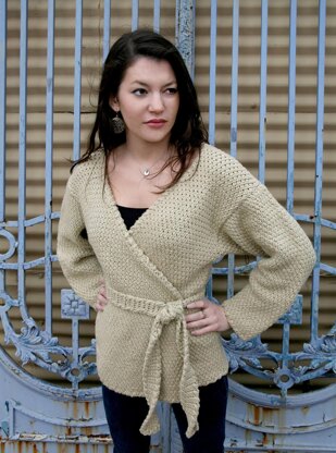A heavily textured stitch is the only embellishment to this simple wrapped and belted cardigan. This one is all about casual comfort.