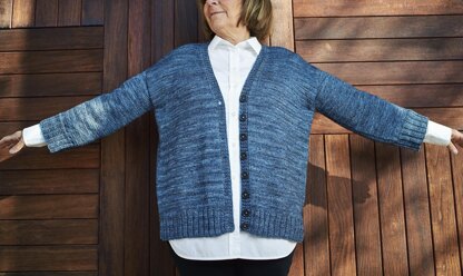 FINISHED MEASUREMENTS CHEST (Approx 8-12"/20-30cm positive ease when buttoned) 43 ½ (49, 55 ½, 62)"/110.5 (124.5, 141, 157.5)cm (buttoned) LENGTH 24 (24 ½, 25 ½, 26 ½)"/61 (62, 65, 67.5)cm