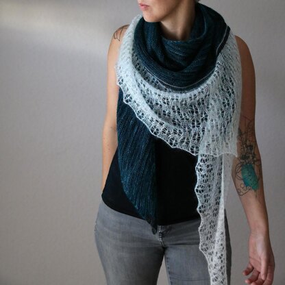 Vincent van Gogh’s famous night study, which we know as The Starry Night, was his attempt to capture the mystery of the night sky on canvas. This Night Study, an asymmetrical triangle shawl, is my own attempt.