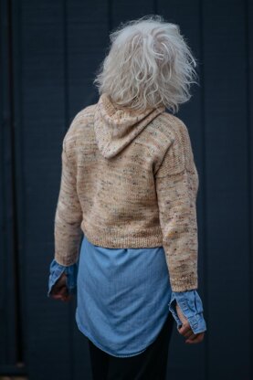 A cropped pullover that makes a great layering piece! Instructions are included for a rolled neck or hood. Instructions are also included for lengthening the body.