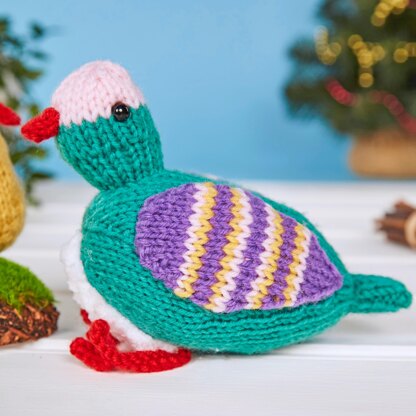Pop Noel the Partridge and the pear fruit on your tree this year, to celebrate the first day of Christmas. Designed by Amanda Berry @fluffandfuzz, the partridge and pear are knitted in acrylic aran weight yarns on single pointed needles (not in the round). For confident beginners and above, other techniques used include casting on and off, knits, purls, increases and decreases, knitting stripes, and seaming to finish. The partridge is 15cm long and the pear 6.5cm tall (not including the stalk).