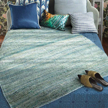 Sublimely soft in wool/silk/alpaca, Tennen, Noro 1421 Sequence Stripes Blanket is knit in a broken garter stitch pattern. It’s worked in alternating ten-stitch panels of knit and purl garter stitch, creating the look of crisscrossing vertical lines. It’s finished with an I-cord border. Subtle, tonal color shifts highlight the wool, alpaca, and silk blend of Noro’s Tennen. This single ply, worsted weight yarn has a thick-to-thin texture and a lot of yardage, making it a great deal.