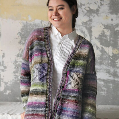The Noro Horizontal Cable Cardi has a dropped shoulder silhouette and a