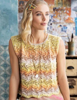 Sleeveless Top is knit in the round from the bottom up to the armholes. Akari