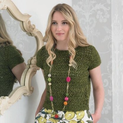 Dainty is a very cute and feminine lace top knit in Noro Silk Garden Solo. Knit in pieces and then seamed, this sweater features garter stitch set-in sleeves, a stockinette back and lace front.